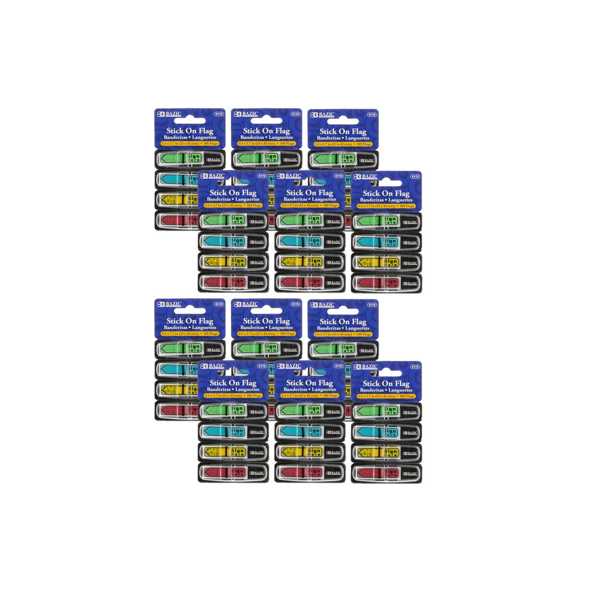 Self-stick flags adheres securely and allows repositioning with ease. Durable material prevents wear and tear from repeated handling and use. Features durable perforated cardboard dispensers with plastic cover. Colors include: Neon Blue, Neon Green, Neon Yellow and Neon Red. Measures 0.5" x 1.7". Each dispenser includes 25 flags. Each pack includes 4 dispensers for a total of 100 flags. Sold as 12 packs for a total of 1200 flags.