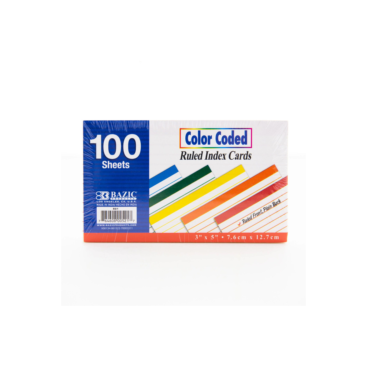 - COLOR CODED. 100 cards per pack with 5 different colors- blue, green, yellow, orange, and red. Size: 3"x5"inch- 7.6cm x 12.7cm