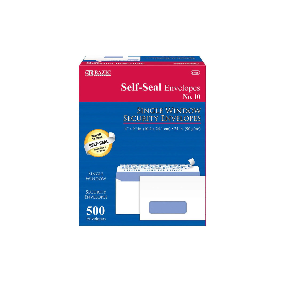 - #10 SELF-SEAL SINGLE WINDOW: These self-sealing windowed envelopes measure 4-1/8" x 9 1/2" inch.