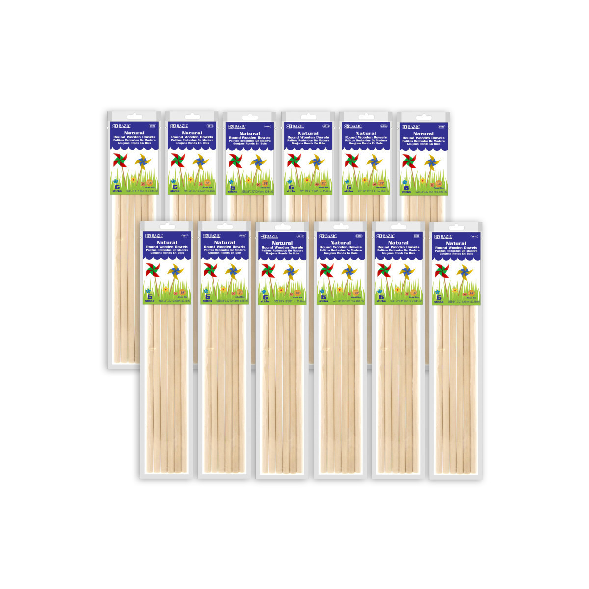 These 3/8" x 12" round wooden dowels are made from white Baltic birch, and come pre-sanded and smooth. Safe, clean, unblemished wood craft sticks are great for DIY projects. Ideal for wedding cake layer support, and sharpens easily with pencil sharpener for insertion. Must have tools for homemade desserts like candy, lollipops, cake pops, birthday cakes. These high-quality wooden dowel rods are perfect for dollhouses, making wood toys, detailed wood crafts, model building, kids crafts, home decor, and much more. Each hardwood dowel rod is completely sanded and smoothed down during production so the hard work is already done for you. They are safe for kids and school use. Great teacher supplies in the classroom for a puppet show, flags, wedding props, photo props, kids crafts, handmade gifts. Each pack includes 6 dowels. Sold as 12 packs for a total of 72 dowels.
