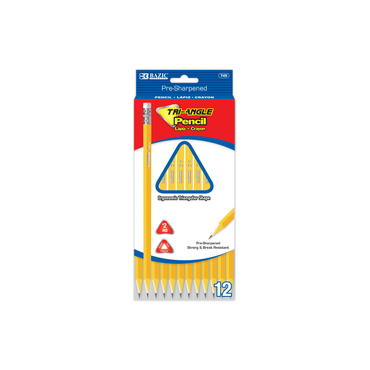 The tri-angle pencil pack includes 12 #2 triangular pre-sharpened pencils with latex-free erasers, offering smooth, consistent lines that are perfect for writing, drawing, and standardized testing. The triangular body provides a comfortable ergonomic grip while naturally promoting proper hand positioning and reducing hand fatigue. Additionally, this shape prevents the pencil from rolling off your table. Made from durable wood, these pencils feature easy clean sharpening and thick, break-resistant graphite lead, which results in less sharpening and produces dark, long-lasting, readable, and consistent strokes. Each pencil comes pre-sharpened, allowing you to start writing or drawing immediately. This feature saves time and effort, making these pencils convenient for both classroom and personal use. They are suitable for a variety of tasks, from note-taking and homework to drawings and professional writing, making them ideal for students, teachers, artists, and as bulk supplies for schools or offices. Each pack includes 12 pencils. Sold as 24 packs for a total of 288 pencils.