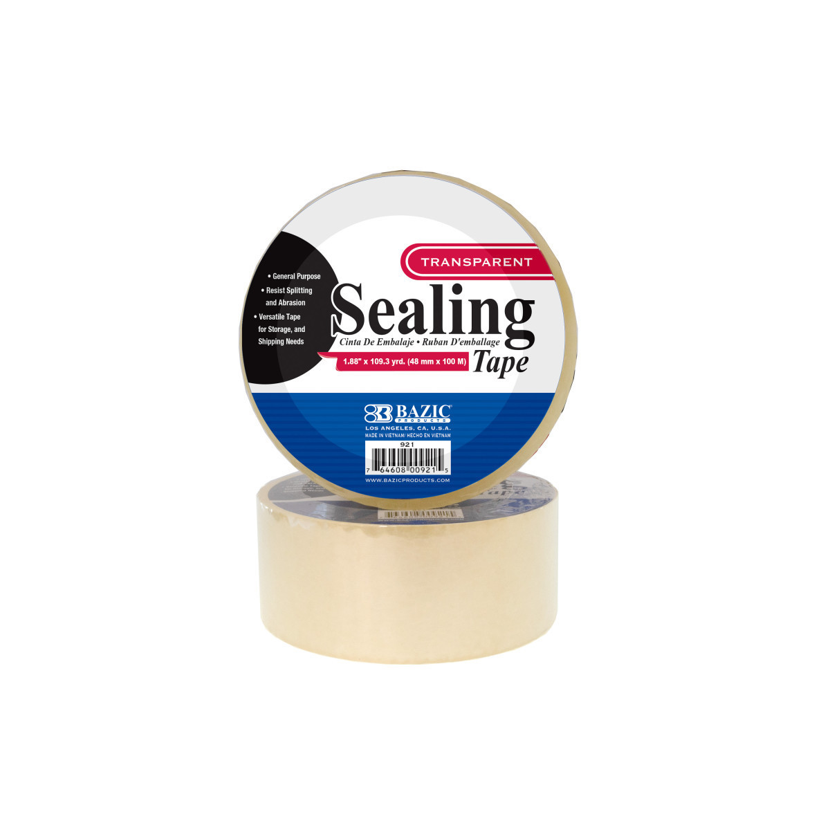 - STRONG ADHESIVE. BAZIC transparent or tan packaging tape unwinds smoothly and easily; resists splitting and tearing, adheres instantly and has a strong film backing.