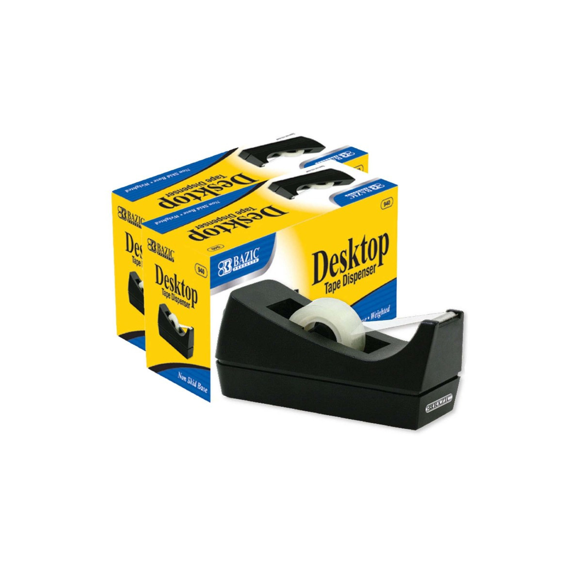 Made of sturdy high-impact plastic with weighted nonskid base, for one-handed tape dispensing