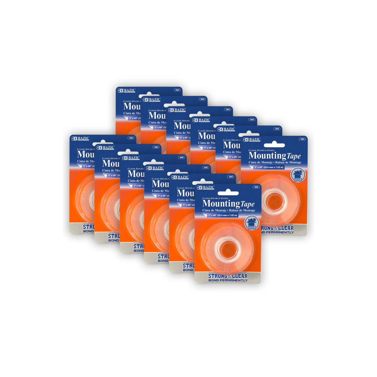 This tape will not leave residues after being removed from a smooth surface. Do Not Use on painted walls, wallpaper, delicate, or other non-stick surfaces. Bonds to metal, wood, glass, stone, brick, concrete, plastic, tile, and ceramic. Stick to almost anything with a smooth surface so you can stick anything anywhere. Perfect for transparent object mounting, such as window decorations. Ideal for a long-lasting, waterproof, weatherproof, and heavy duty mounting. Instant Bonding. No tools are required. This super adhesive tape works perfectly in temperatures ranging from -4 F to 248 F. Good for both indoor and outdoor. Made from acrylic adhesive. Thickness: 1mm. Holding power: Hold up to 15 lbs (1 pound per 4 inches). Each roll measures 1" x 60". Sold as a pack of 12 rolls.
