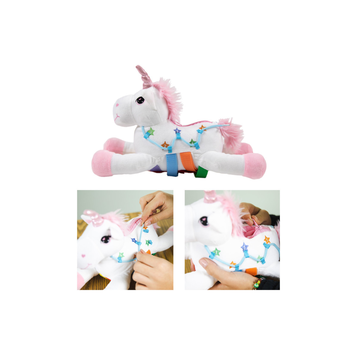 - ACTIVE LEARNING: Engages kids in tactile exploration through their natural fascination with zippers, buttons, buckles, and counting numbers.