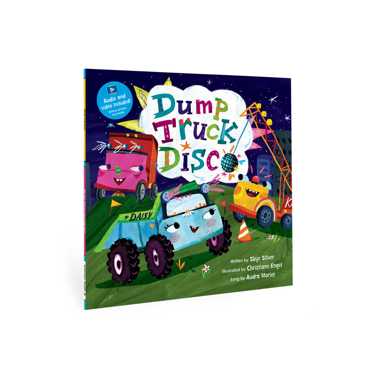 Dump Truck Daisy and her construction vehicle crew are on a secret nighttime mission — build a playground before sunrise! Detailed endnotes provide additional information about construction vehicles and inclusive playgrounds. Vibrant artwork and a catchy disco tune and animation make this a stellar choice for any child who is fascinated by construction vehicles. QR code includes access to an animated singalong of the book. 32 pages.