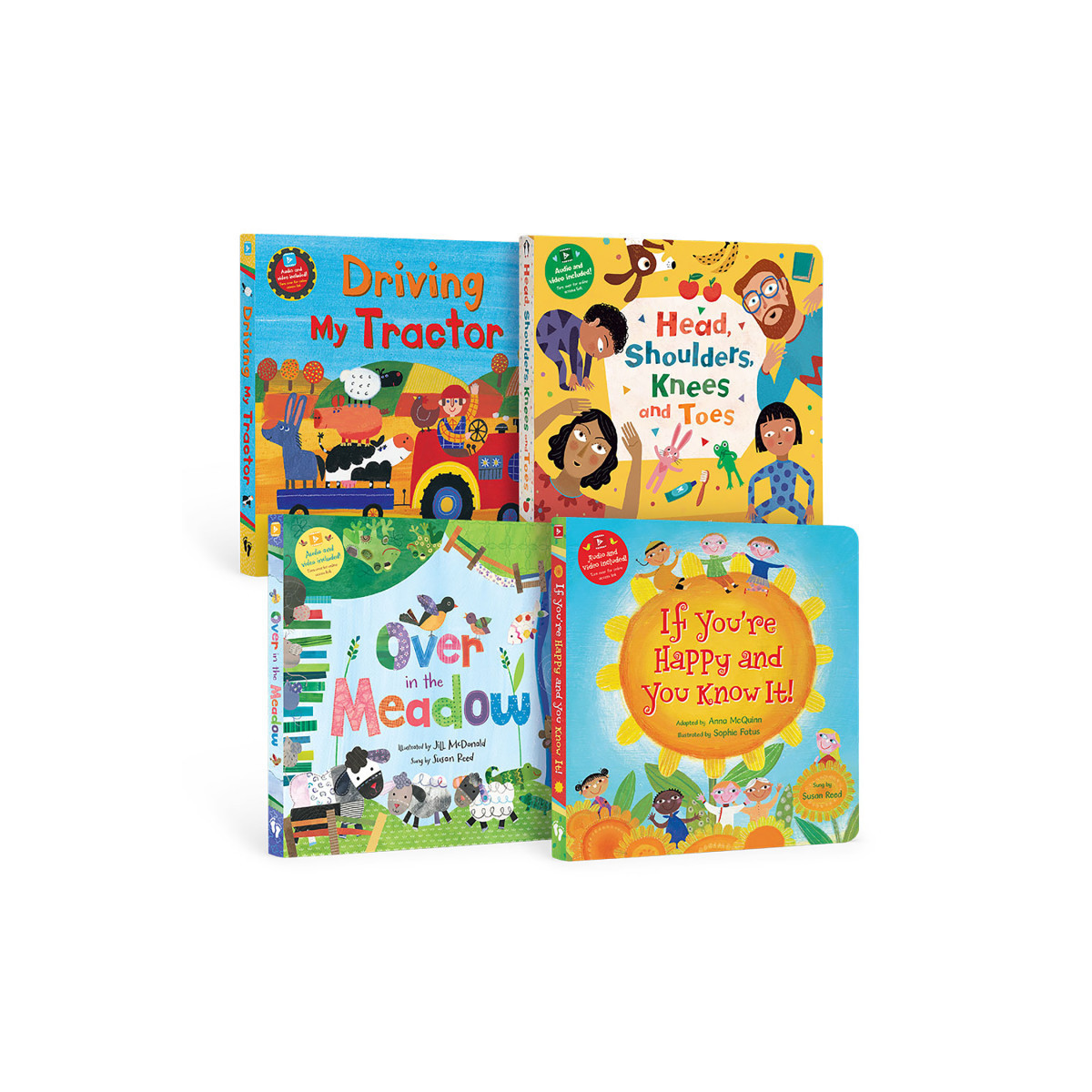 Sing, dance and learn with our bestselling Barefoot Singalongs series, all in a large board format! Featuring themes of global awareness, building healthy habits, animals and more. These titles include QR codes to access online audio and animation to get kids moving and grooving. This bundle includes: Driving My Tractor (9781646868551); Head, Shoulders, Knees and Toes (9781646862856); Over in the Meadow (9781646862887); If You're Happy and You Know It (9781646862863).