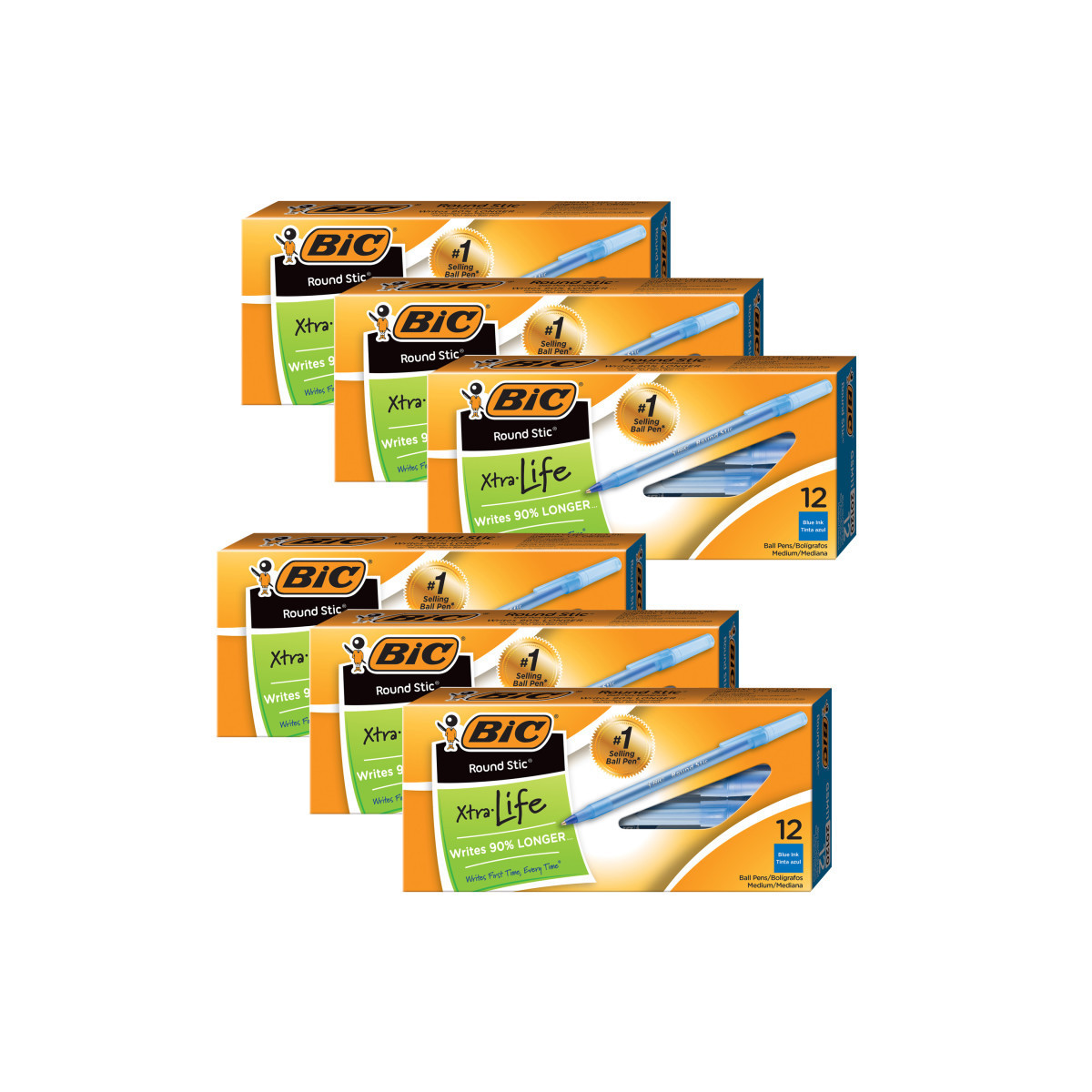 BIC® Round Stic® pens are a lightweight round barrel pen for comfortable writing. Tough, durable tungsten carbide point insures the smoothest of writing. Features a medium point and the cap and end plug color indicate the ink color. It is easy to identify and is designed for long-lasting dependability. Features a ventilated cap and tungsten carbide ball. Each pack includes 12 blue pens. Sold as 6 packs for a total of 72 pens.