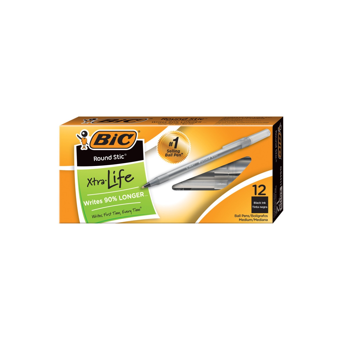 BIC® Round Stic® pens are a lightweight round barrel pen for comfortable writing. Tough, durable tungsten carbide point insures the smoothest of writing. Features a medium point and the cap and end plug color indicate the ink color. It is easy to identify and is designed for long-lasting dependability. Features a ventilated cap and tungsten carbide ball. 1 Dozen black Pens.