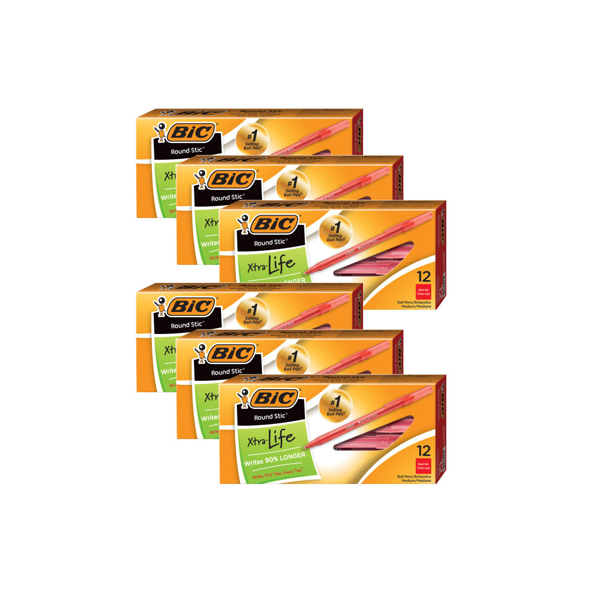 BIC® Round Stic® pens are a lightweight round barrel pen for comfortable writing. Tough, durable tungsten carbide point insures the smoothest of writing. Features a medium point and the cap and end plug color indicate the ink color. It is easy to identify and is designed for long-lasting dependability. Features a ventilated cap and tungsten carbide ball. Each pack includes 12 red pens. Sold as 6 packs for a total of 72 pens.