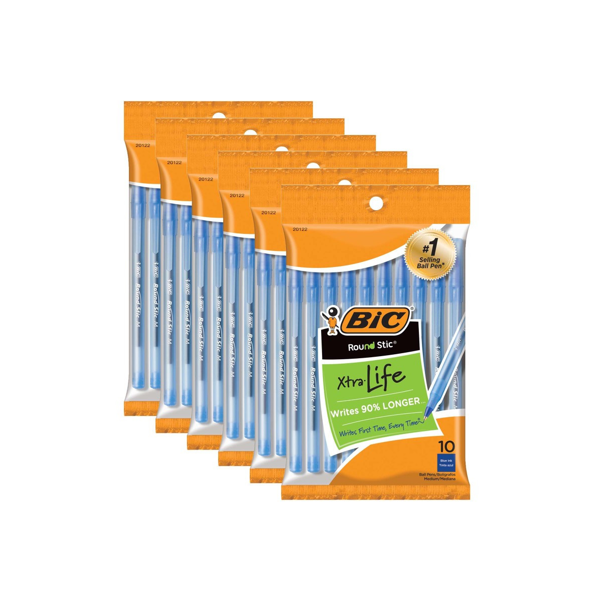 The BIC Round Stic Xtra Life Ball Pen comes with a versatile 1.0mm medium point that creates vivid lines, making it suitable for a wide variety of writing activities. These reliable pens feature a durable tungsten carbide ball point that releases ink consistently and evenly. The translucent barrel lets you see the remaining ink supply, while the flexible round barrel design keeps you comfortable during extended writing sessions. The Round Stic Xtra Life Ball Pen features a flexible round barrel that fits snugly in the hand for hours of comfortable writing. The frosted cap and translucent barrel give the pen a sleek look and keep the ink supply visible, so you can see at a glance how much ink is remaining. Each pack includes 10 pens. Sold as 6 packs for a total of 60 pens.