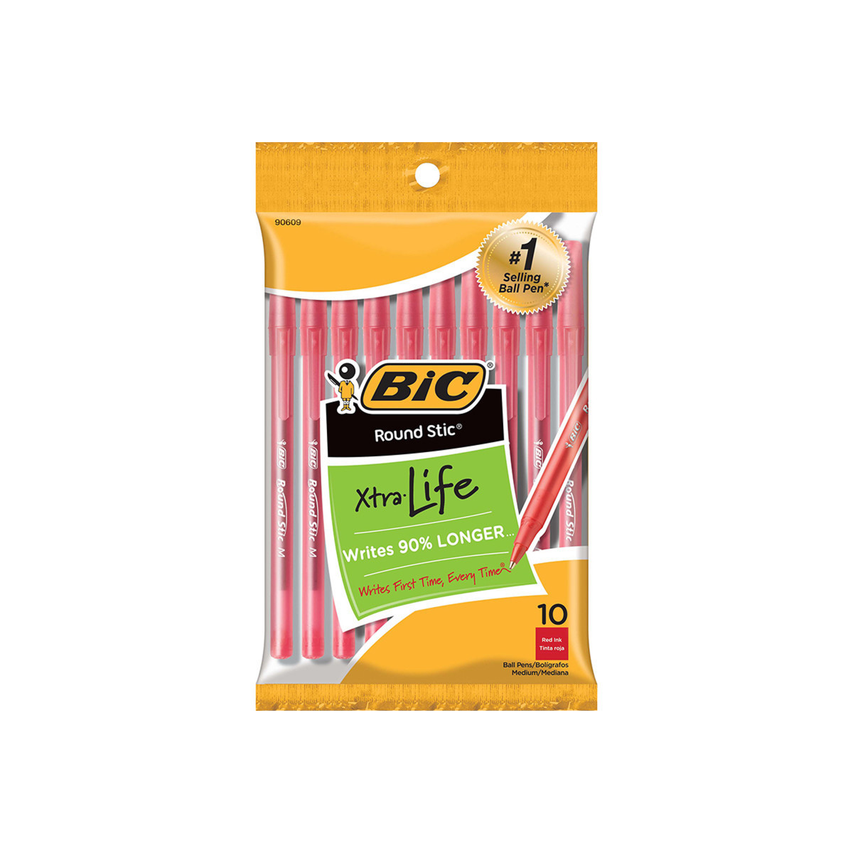 The BIC Round Stic Xtra Life Ball Pen is a dependable favorite that offers performance and value. This pen writes 90% longer on average than Papermate® InkJoy® 100 Ball Stick Pen.** It features a versatile 1.0mm medium point that creates vivid lines, making it ideal for a variety of writing applications from note-taking to doodling. The pen comes with a reliable tungsten carbide ball point that spreads the ink smoothly and evenly. The flexible round barrel rests comfortably in your hand, while the translucent barrel shows the remaining ink supply, so you know when you're running low. BIC Round Stic Xtra Life Ball Pens are non-refillable.