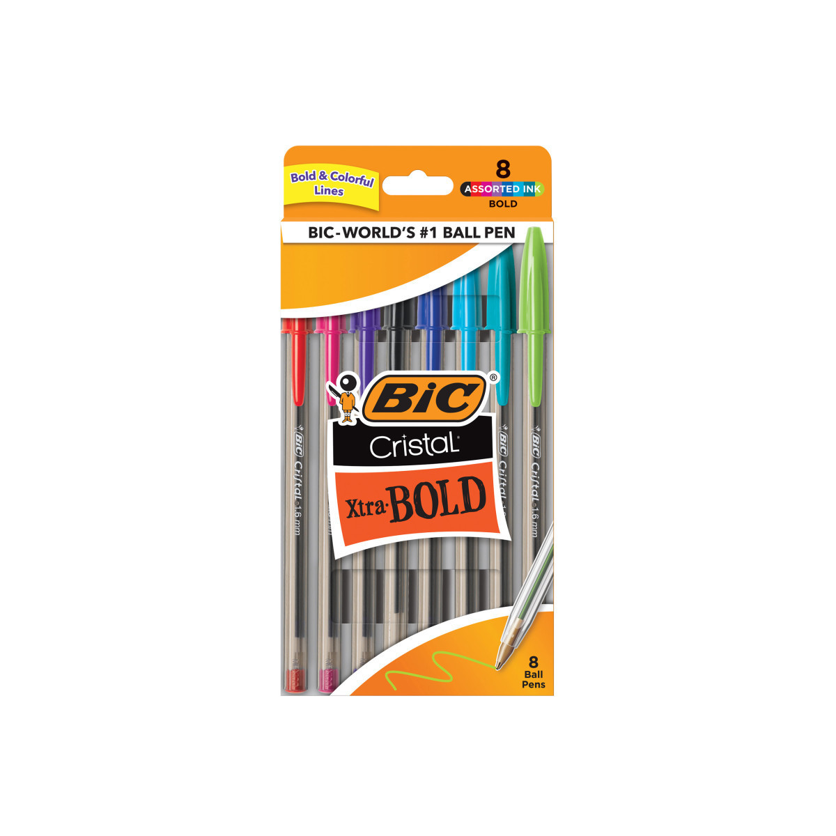 One 8-count pack of BIC Cristal Xtra Bold Ballpoint Pen, Assorted colors