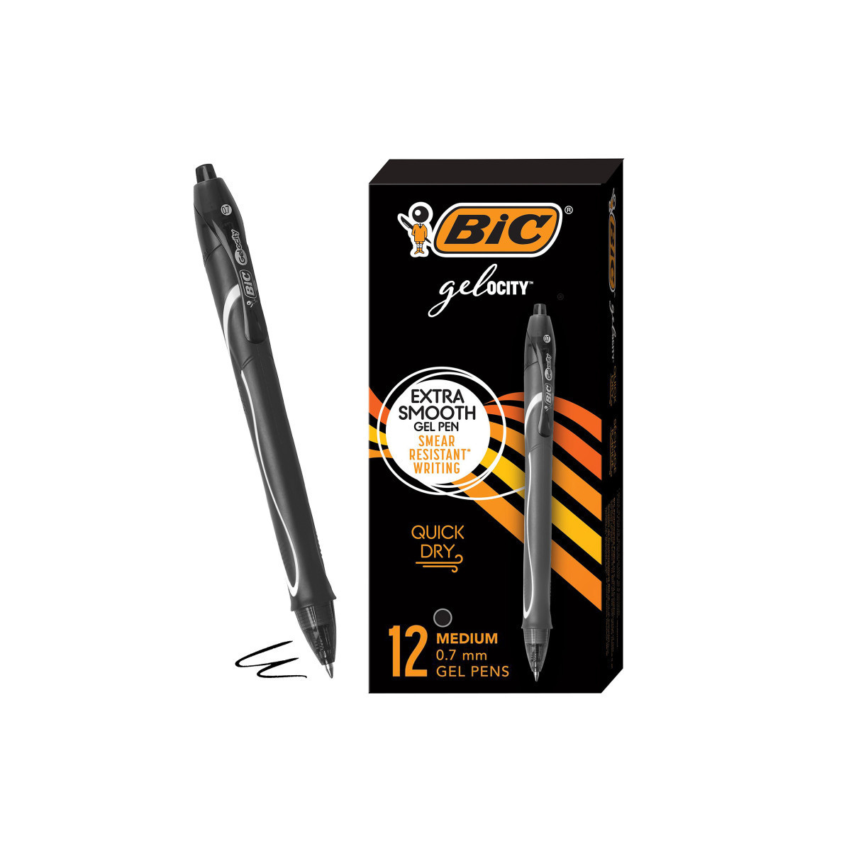 Enjoy a super-smooth writing experience with BIC Gelocity Quick Dry Gel Pens. Ideal as school supplies or office supplies for note-taking, journaling, and a variety of other everyday writing activities, these gel pens feature a super-smooth, smear free, quick drying ink that dries in as little as 5 seconds. The round barrel rests comfortably in your hand, while the 0.7mm point creates vivid marks. This retractable gel pen allows you to extend and retract the tip with a simple click. Available in a variety of vibrant ink colors, these gel pens are sure to leave a fun, striking impression.