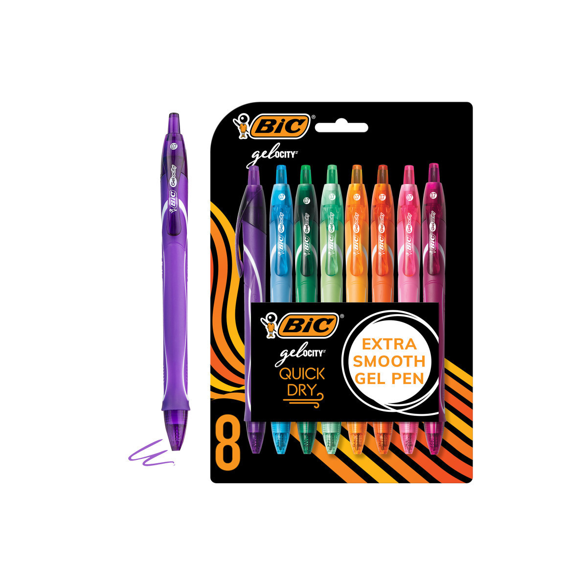 One 8-count pack of BIC Gel-ocity Quick Dry Fashion gel ink pens
