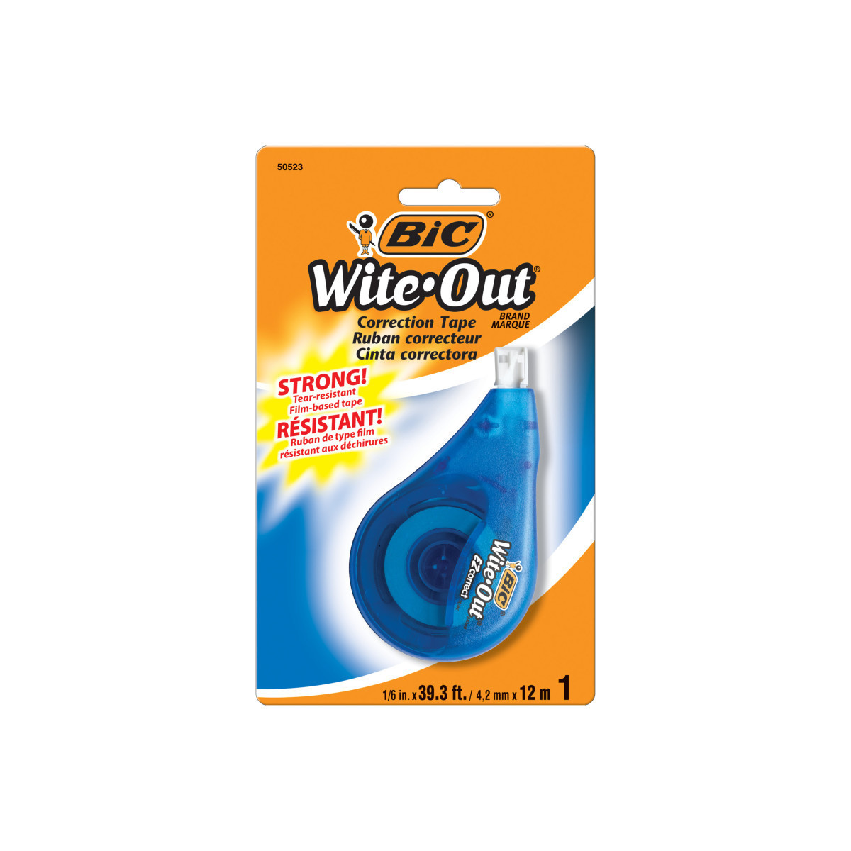 Quickly correct typed or handwritten documents with BIC White-Out Brand EZ Correct Correction Tape. Made by America’s #1 Correction Brand*, this correction tape goes on dry, allowing you to make instant corrections with no mess and no waiting time. Dispensing the tape is easy: simply hold the dispenser with your thumb in the groove, position the tip flat on your paper, press down firmly, and gently move from left to right. Offering greater strength than paper-based tape, this film-based correction tape is more tear resistant to create tidy, inconspicuous corrections that last. The self-winding mechanism helps prevent the tape from loosening, so you can apply the tape smoothly and accurately. And thanks to its translucent body, the dispenser lets you see how much tape is remaining.