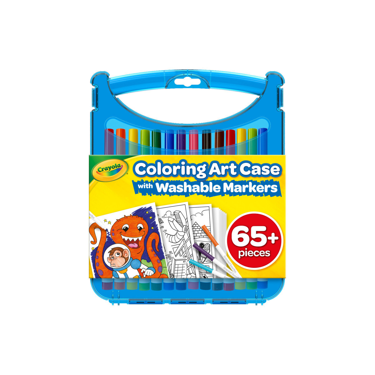 Includes 25 Super Tip markers, 20 sheets of line art, 20 blank sheets and a durable storage case with a built-in handle