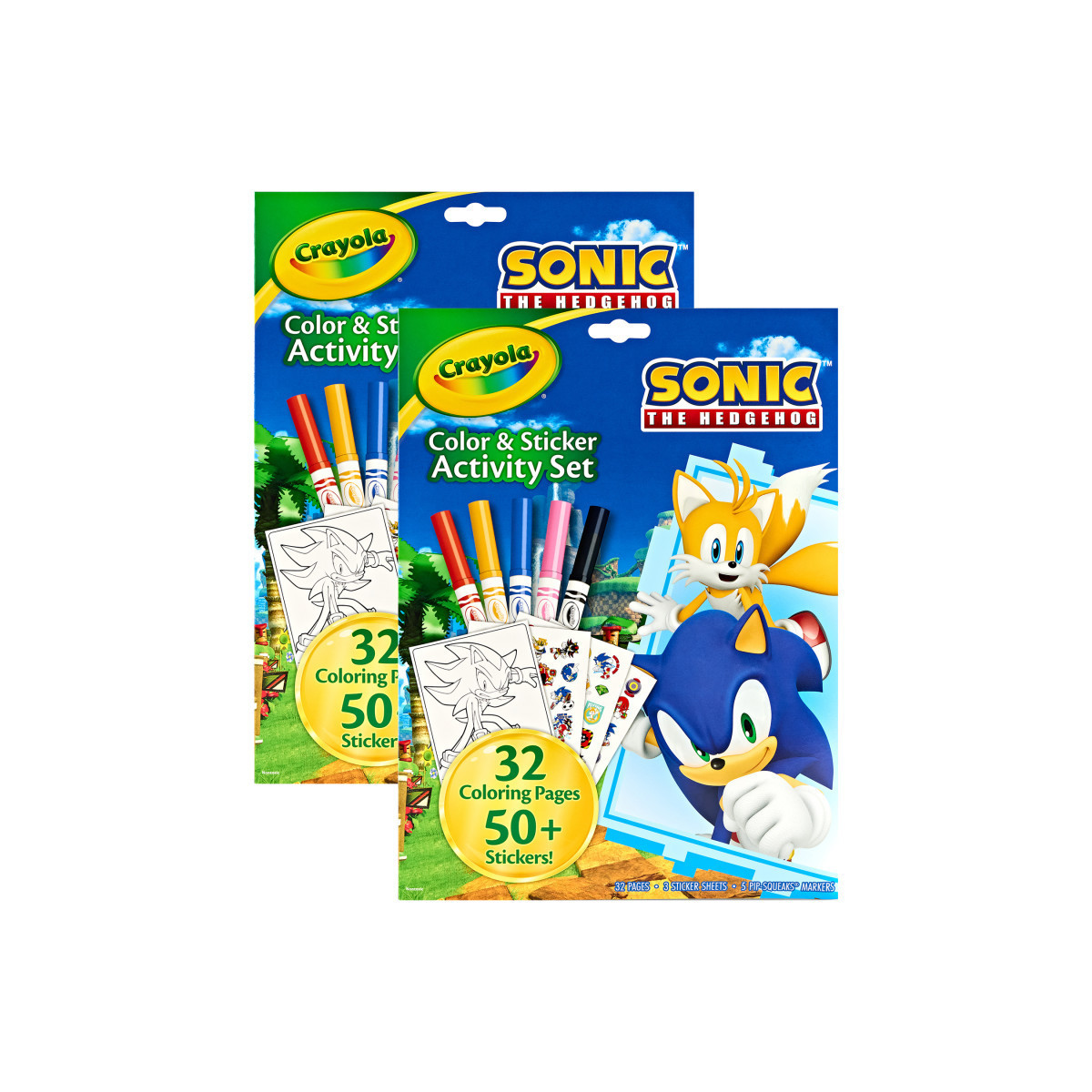 Sold as 2 complete sets, each set features 32 Sonic Coloring Pages and 3 Sonic Sticker Sheets, adorned with beloved characters like Sonic, Knuckles, Tails, and Shadow