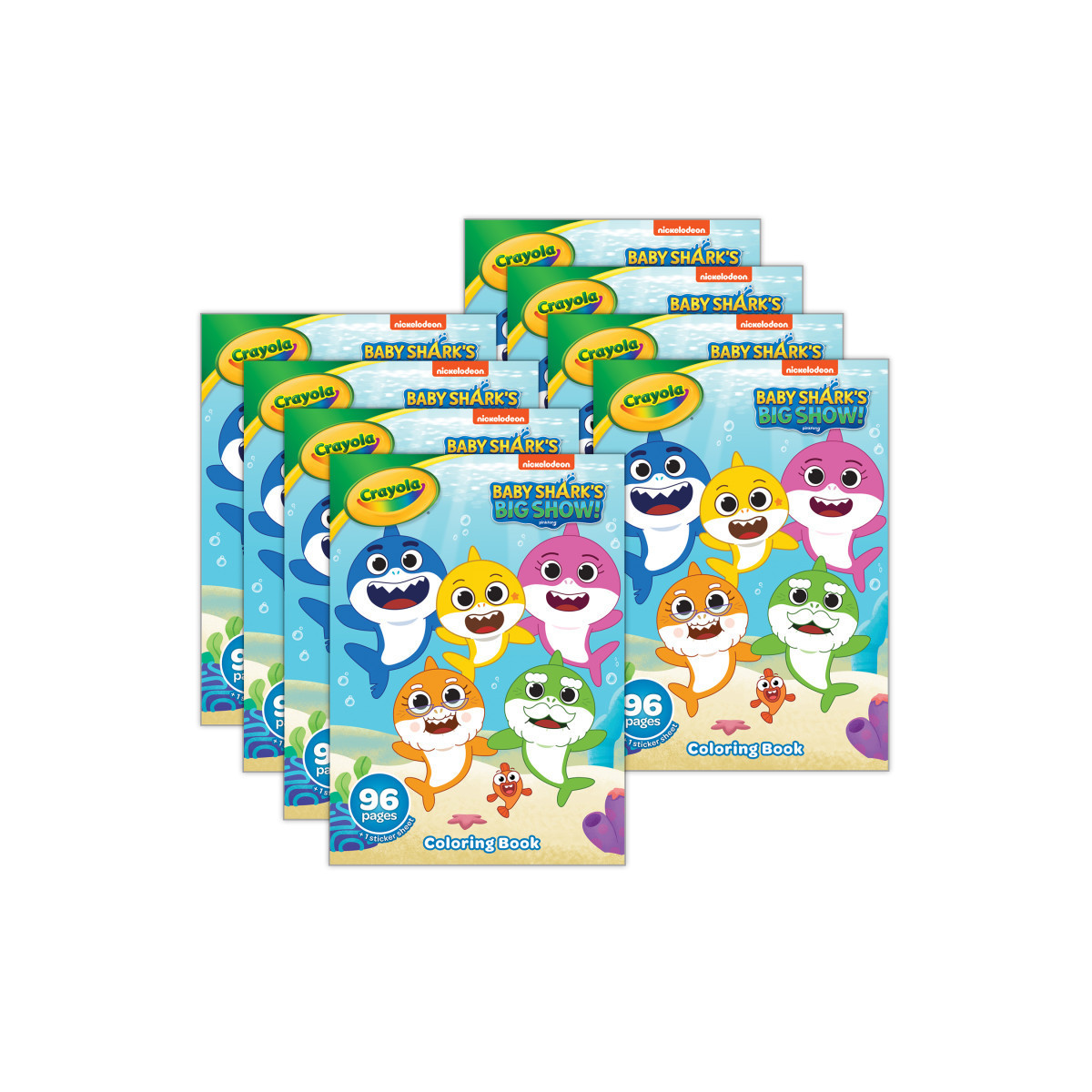 BABY SHARK COLORING BOOK: Sold as a pack of 8, each kids coloring book features 96 Baby Shark Coloring Pages and 1 Sticker Sheet for kids.