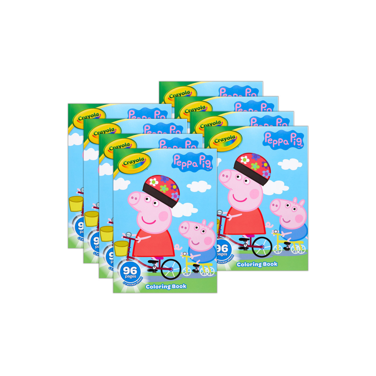 The adventures of Peppa Pig come to life with the Crayola My Peppa Pig Coloring Book. Each coloring book features 96 pages of art depicting scenes of Peppa, her brother George, Mummy and Daddy Pig and all of kids' favorite characters from the popular Peppa Pig show. Crayola Coloring Books offer kids pages and pages of line art featuring their favorite characters from the big and small screen to color as they please! Also included is one sheet of stickers to make coloring even more fun! Makes a great gift, especially when paired with a set of Crayola Crayons or Colored Pencils (each sold separately). Ideal for boys, girls or any fans of Peppa Pig ages 3 and up. Sold as a pack of 8 coloring books.