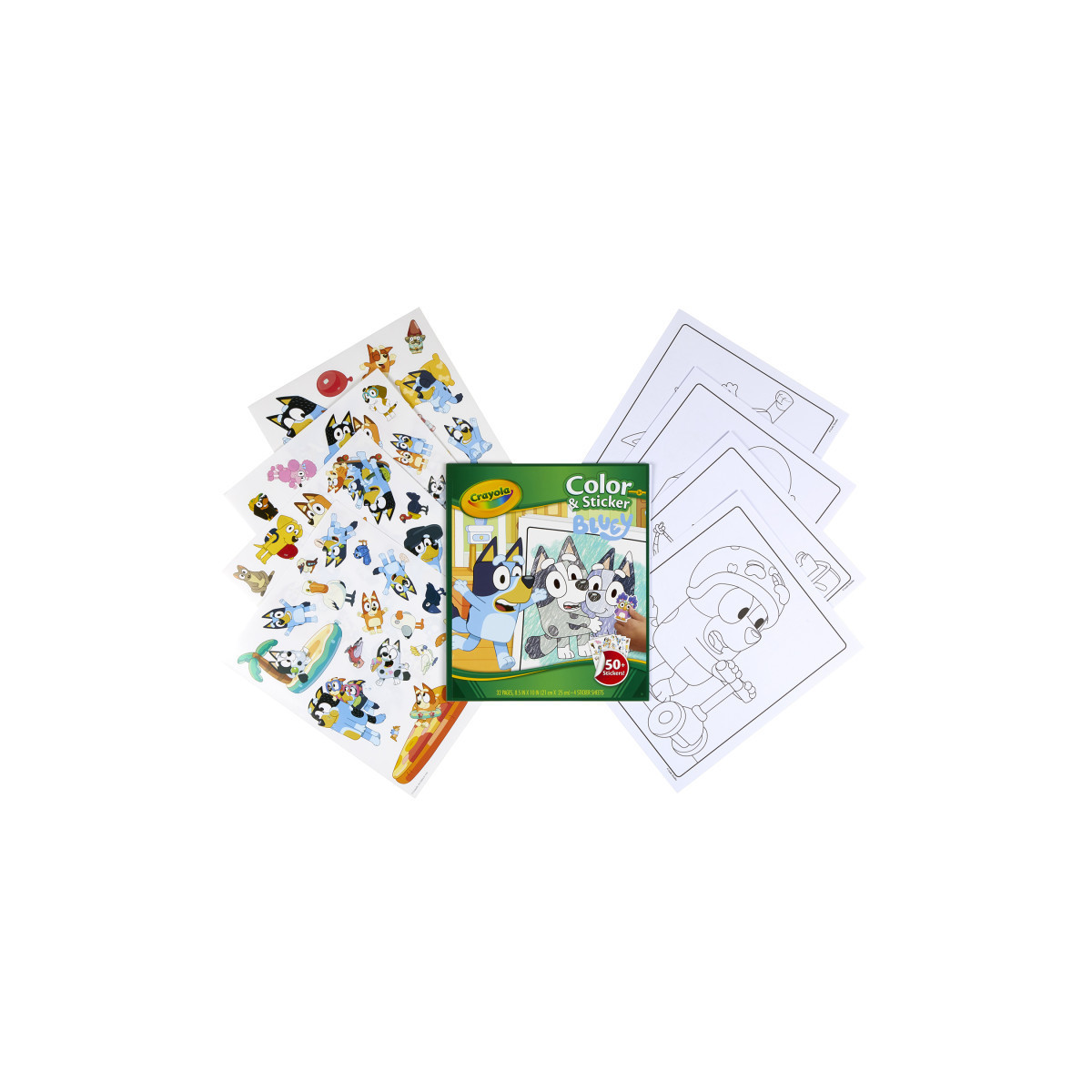 CRAYOLA COLOR & STICKER: Includes 32 Coloring Pages and 4 Bluey Sticker Sheets with characters from the Bluey TV show.