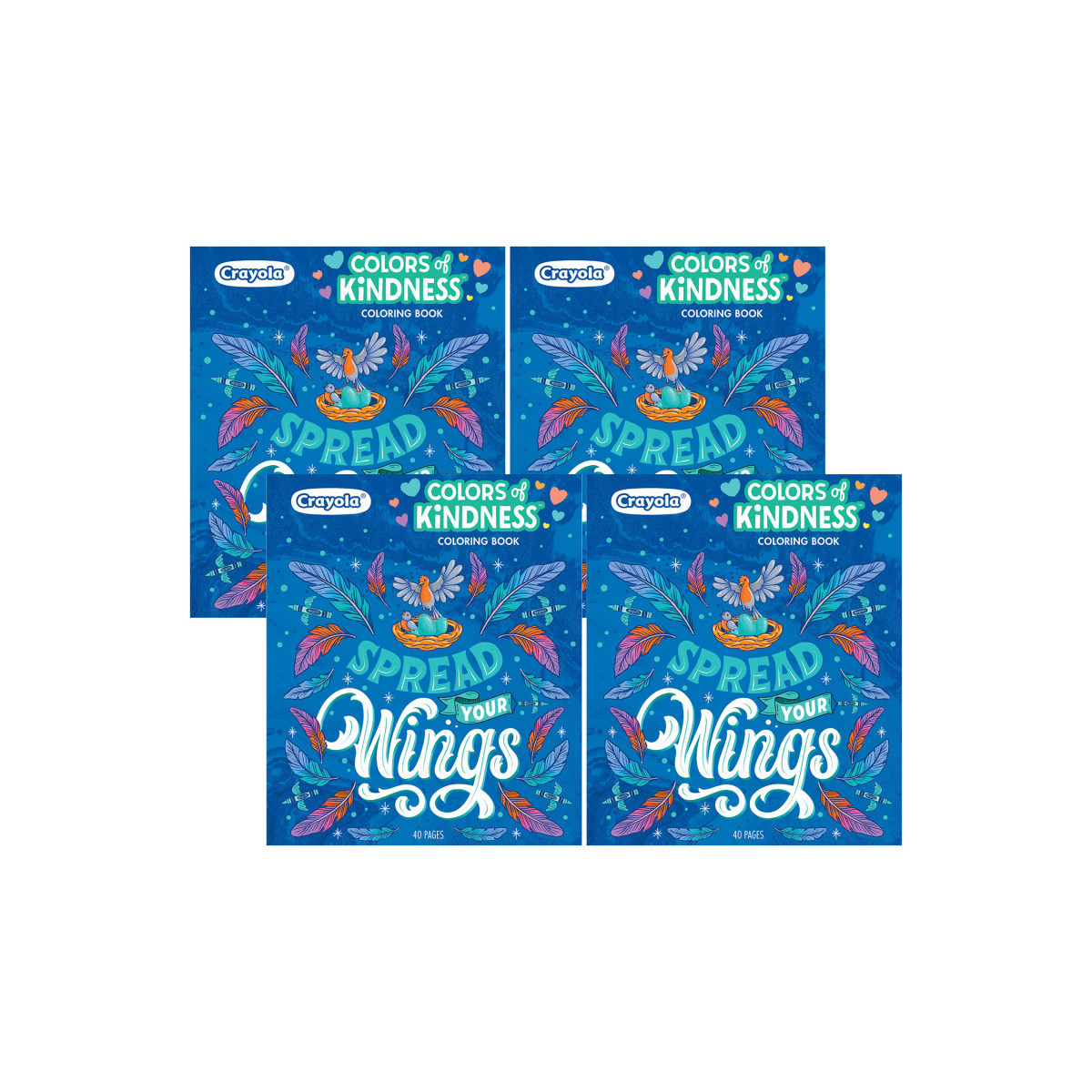 Spread smiles with the beautifully illustrated Colors of Kindness Adult Coloring Book! Each of the 40 detailed coloring pages carries a message that speaks to us all. Perforated coloring pages make it easy to color with friends or share each positive message by displaying them in your home. Whether you're showing a friend how much you love them, or finding a peaceful way to relax and refresh, this coloring book is full of creative goodness. Pair it with the Colors of Kindness Colored Pencils or Fine Line Markers (sold separately) for a bundled gift idea or use your favorite Crayola art supplies at home. This 40-page adult coloring book makes a great gift for friends and family! Sold as a pack of 4 coloring books.