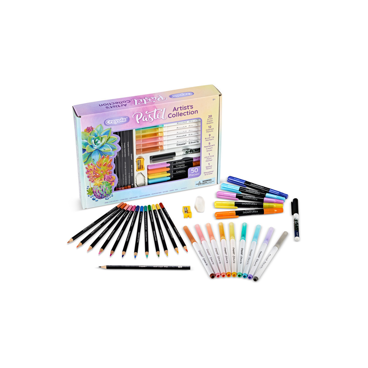The Crayola Pastel Coloring Supplies Set features a variety of fun pastel art tools for kids and adult coloring enthusiasts, alike!