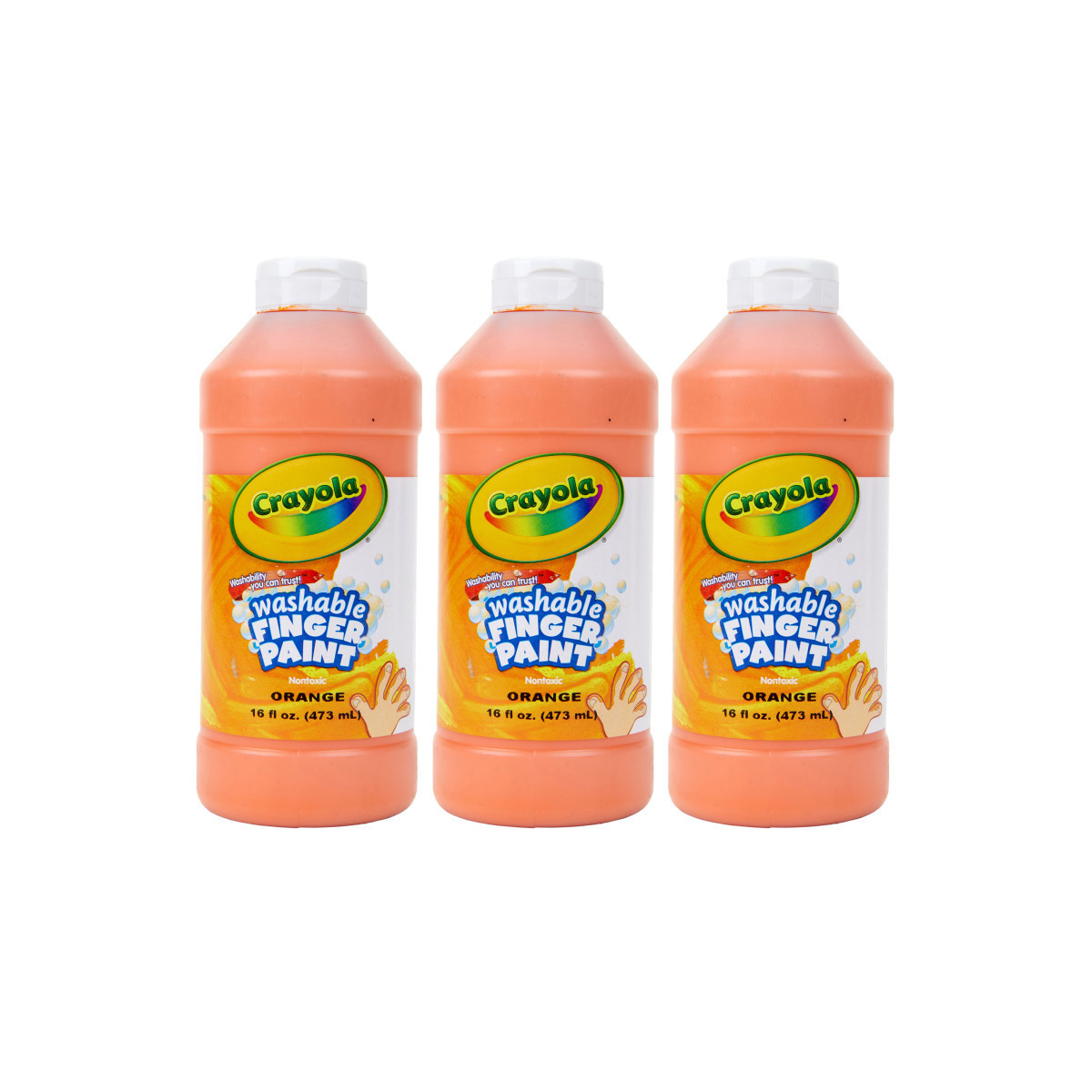 Crayola® Washable Finger Paint, Orange, 16 oz, Pack of 3