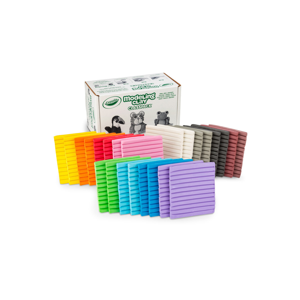 Shape, build and sculpt! Classroom activities just got more fun with 12 colors of Crayola Modeling Clay included in this Crayola Classpack Set. This 24 piece kit of clay for kids, gives little artists everything they need to mold soft sculptures with a variety of colors that will inspire them to create in 3D. This versatile, non-hardening clay is completely reusable. It even stays soft after molding, ensuring it can keep up with your child's imagination. The clay also resists water thanks to its wax and oil-based formula, further lengthening its lifespan. Clay sculptures of animals, cartoons, people and outdoor scenes are just the beginning of what kids can create with this non-hardening, reusable clay. Crayola modeling material is a stable for classroom projects, school assignments, and at home arts and crafts. Makes a great gift for teachers and kids ages 4 and up.