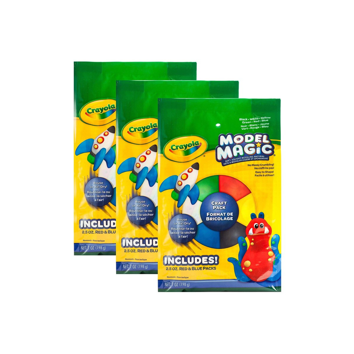 It's time to get crafty with this 6 Pack Model Magic Set! Kids can use the lightweight modeling clay alternative to make fun DIY crafts. Each Model Magic Craft Pack features 2 (2.5 oz) Model Magic Packs in Blue and Red, plus 4 (0.5 oz) Model Magic Packs in Green, White, Black, and Yellow. Air dry their finished art project overnight or store the Model Magic in a resealable container to play another day! Sold as a total of (3) Model Magic Craft Packs.