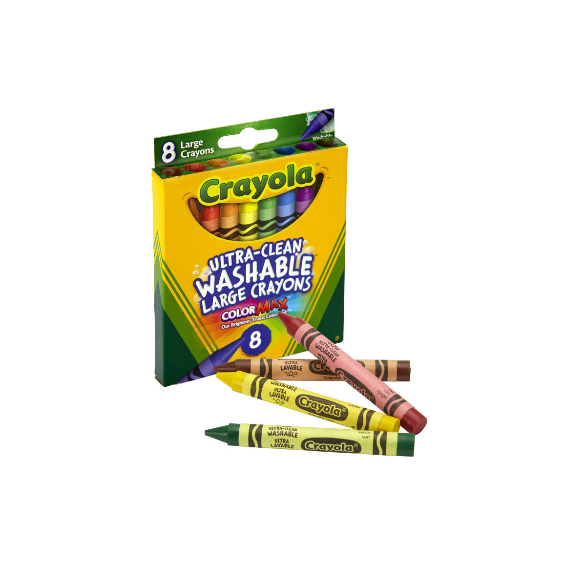 Features 8 Large Washable Crayola Crayons