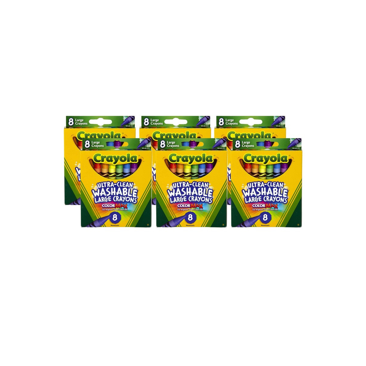 Perfect for school and at-home crafts, this Crayola Crayon Set includes Ultra Clean Washable Crayons in classic colors. Our large crayons are great for small hands, and the Ultra Clean name means that each vivid color can be washed from skin, painted walls, and most clothing. Check off your back to school list with quality crayons that won't leave behind stains! Pair this set with a coloring book or craft supplies (each sold separately) for a great bundled gift idea. Each pack includes 8 crayons. Sold as 6 boxes for a total of 48 crayons.