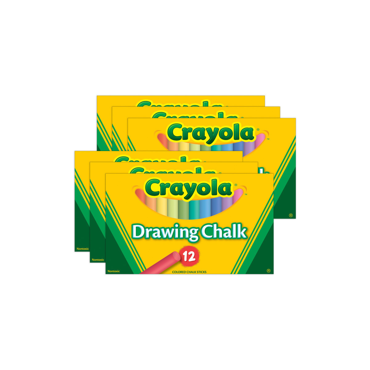 12 sticks of Crayola Chalk in assorted colors per pack, sold as 6 packs, 72 pieces total