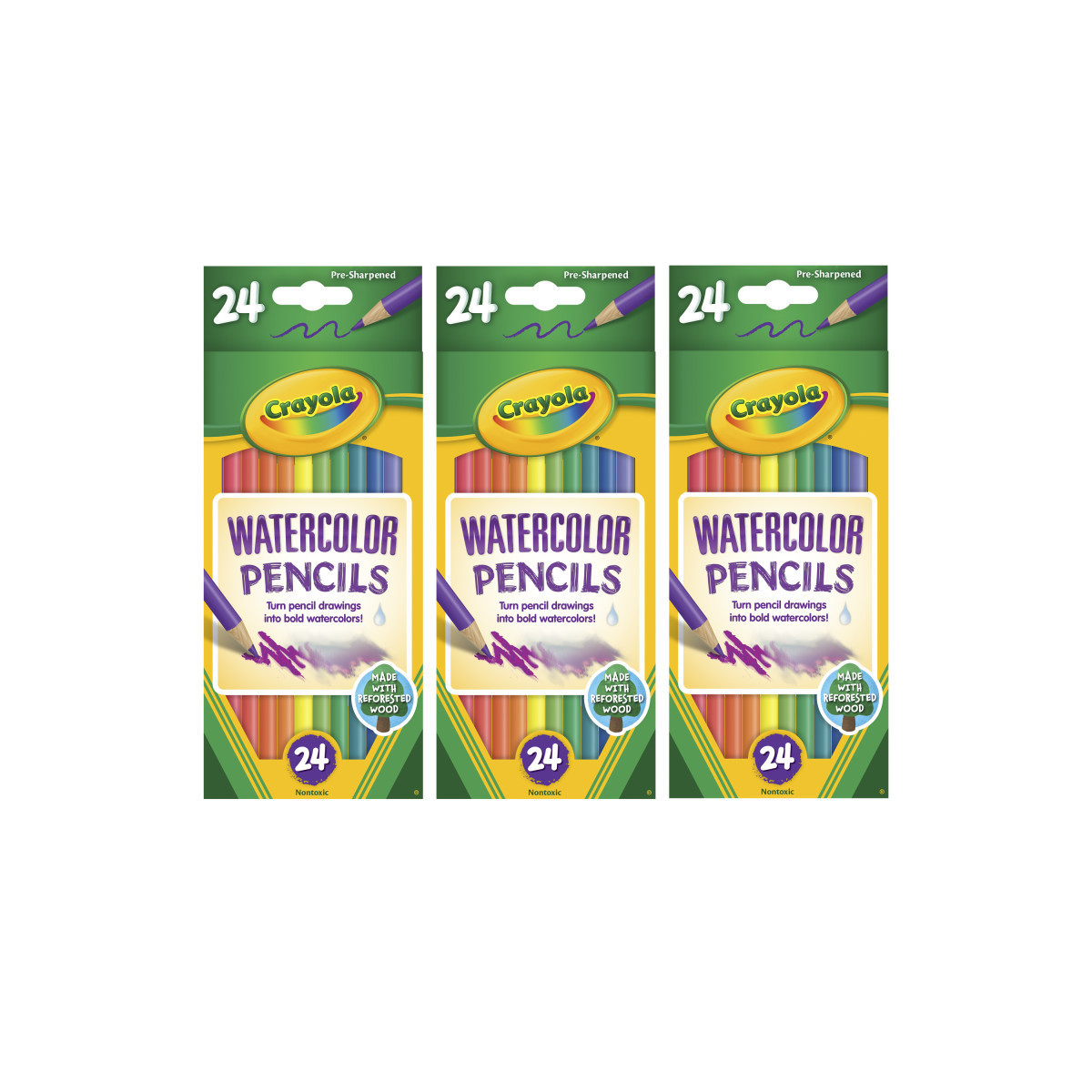 Kids can use these Crayola Watercolor Colored Pencils dry to color and draw or add a few drops of water to create cool watercolor effects. Experimenting with shading, texture and color mixing will produce a host of interesting color results. The colored pencils are pre-sharpened so kids can start drawing as soon as they open the box. The non-toxic pencils are made from reforested wood, something today's eco-conscious families will love. Each box includes 24 Crayola Watercolor Colored Pencils. Sold as 3 boxes for a total of 72 pencils.