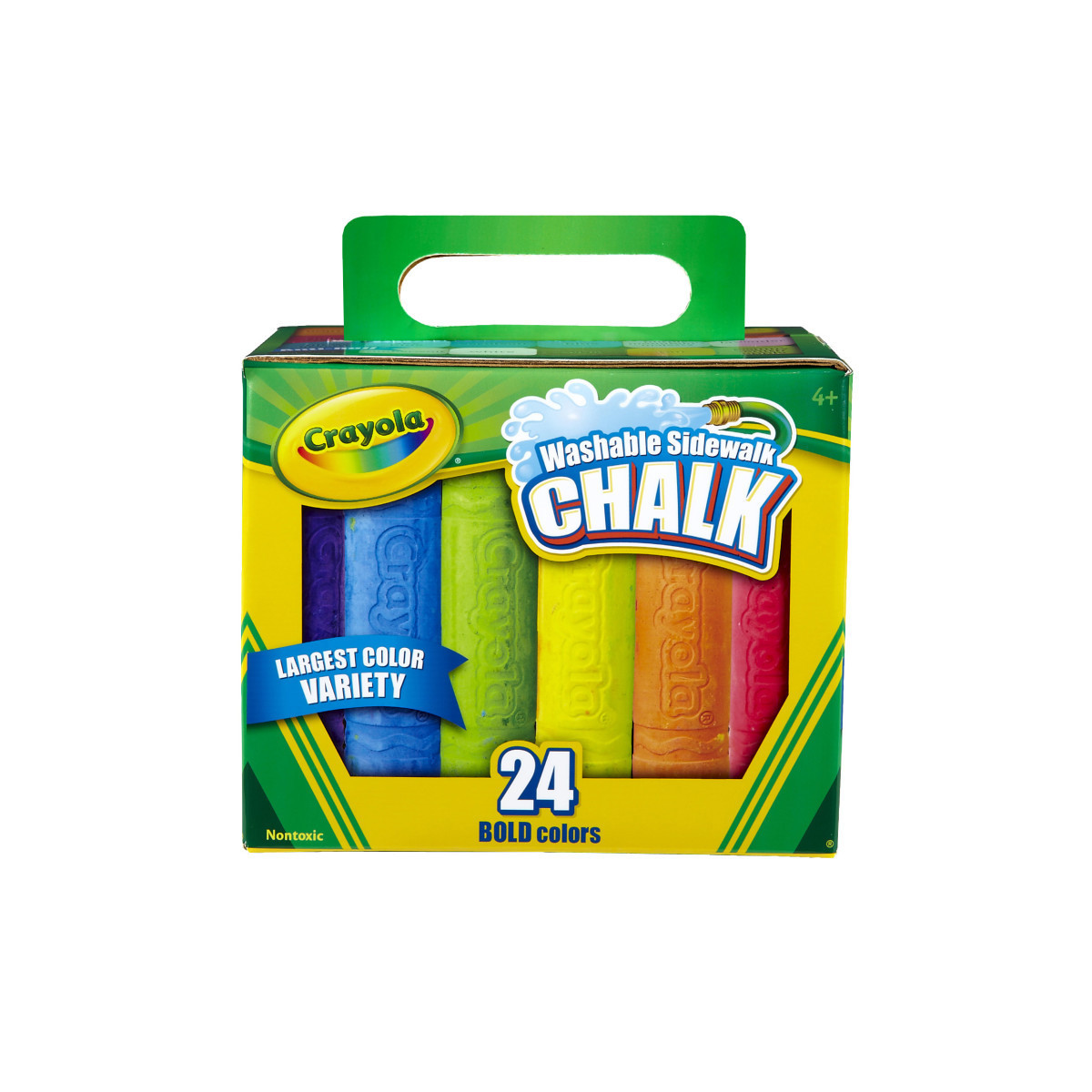 Features 24 Sticks of Crayola Washable Sidewalk Chalk in assorted colors