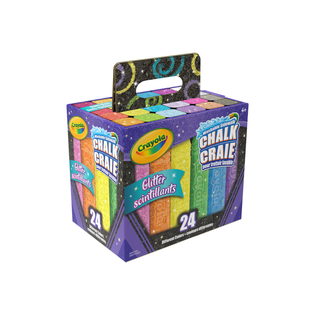 GLITTER CHALK: Transform your sidewalk or driveway into a dazzling display of shimmer and shine with Crayola Glitter Chalk's 12 gold and 12 silver glitter-infused stick