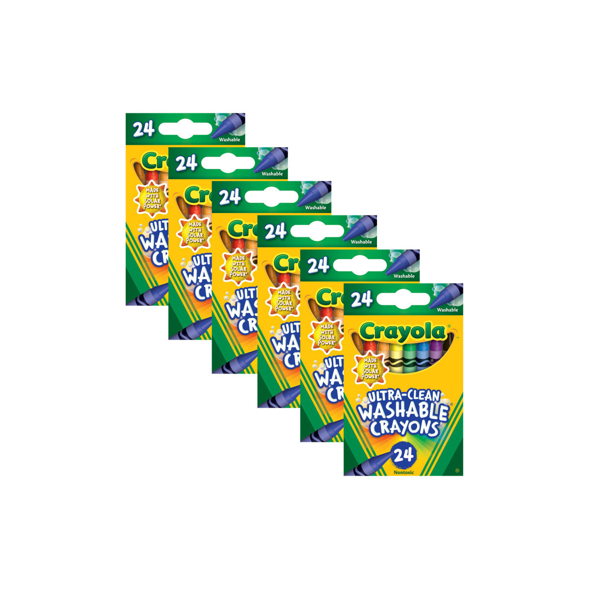 Great for use in the home or at school, Crayola Ultra-Clean washable crayons are an essential creative tool for kids. This pack of non-toxic crayons are specially formulated to wash clean from skin, clothing, and even painted walls. With classic colors and bright, fun shades, The Crayons inspire self-expression and imaginative play. Each pack includes 24 crayons. Sold as 6 packs for a total of 144 crayons.