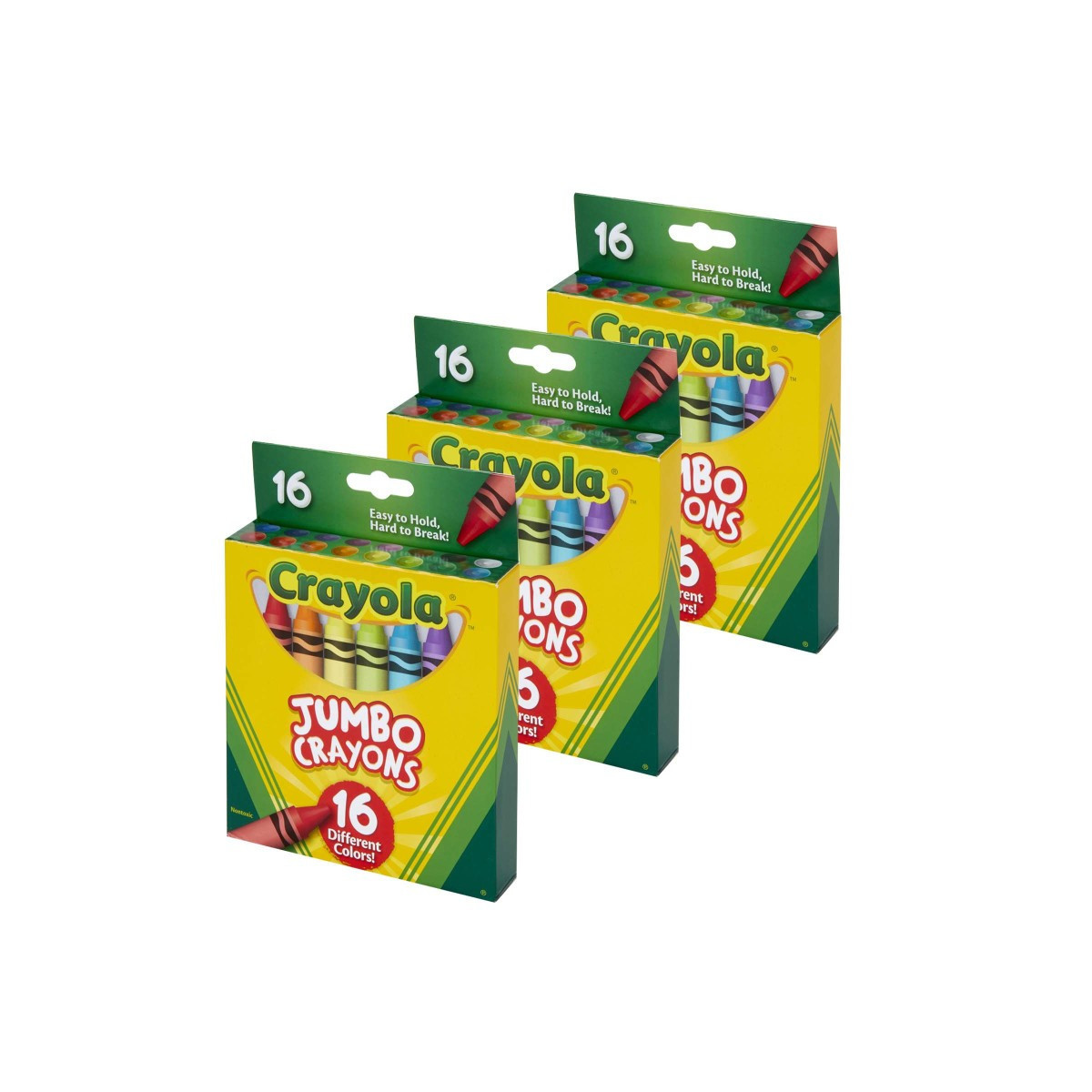 Crayola Jumbo Crayons are easy to hold and hard to break. They're perfect for the little hands of young artists. And their large size means more long-lasting color! Jumbo Crayons come in pack that includes primary and secondary colors and more! Each pack includes 16 crayons. Sold as 3 packs for a total of 48 crayons.