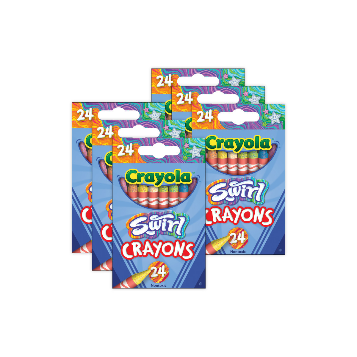 Ever wished for a crayon that mixed all your favorite colors in one vibrant swirl? With the amazing Crayola Swirl Crayons, you can enter a world of rainbows, combining fun-loving colors, and boundless imagination. Each crayon in this box of 24 Crayola Crayons boasts a mesmerizing medley of 3-4 shades per crayon, dancing together to create a unique, streaky color extravaganza! Wield the power to create magical, shade-surprising moments of coloring joy. Stock up classrooms to bring a fun twist to every creative project with art tools that are sure to invigorate any artistic endeavors with an extra pop of color. Built to withstand the energetic hands of young artists, these strong and long-lasting crayons promise hours of coloring fun without constant breakages. So, pick up your Crayola Swirl Crayons and let the adventures flow! Crayola Crayons are crafted with safety in mind, and are nontoxic for little artists aged 3 and up. Each pack includes 24 crayons. Sold as 6 packs for a total of 144 crayons.