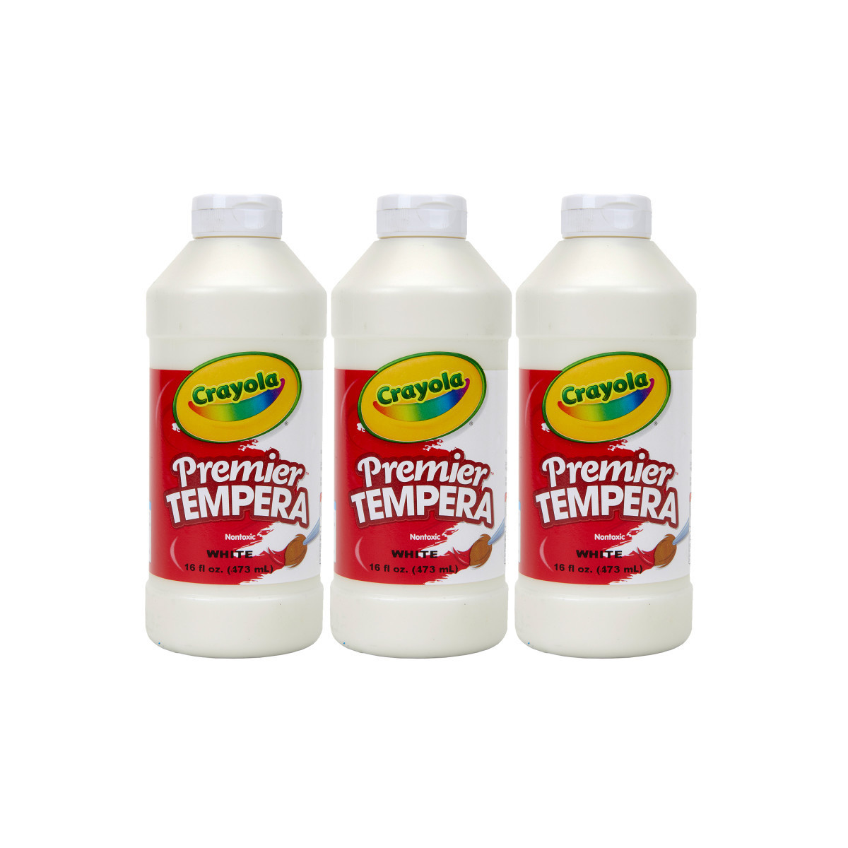 CRAYOLA TEMPERA PAINT: Sold as 3 bottles of 16oz paint in an easy squeeze bottle.