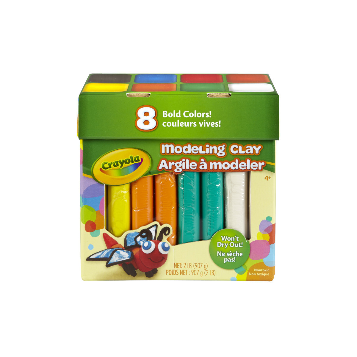 Tactile, easy to work with, and soft to the touch, Crayola Modeling Clay is designed especially for kids' hands. The clay makes an ideal first sculpting compound and can help children develop an early sense of form and finesse. These vibrant colors are great for sculpting play houses, figures, flowers, and more. Completely nontoxic, the clay is safe and suitable for young children ages 36 months and up. The clay is also designed to scrape easily off most surfaces, making cleanup a breeze. Each pack includes 2 lbs. in 8 colors.