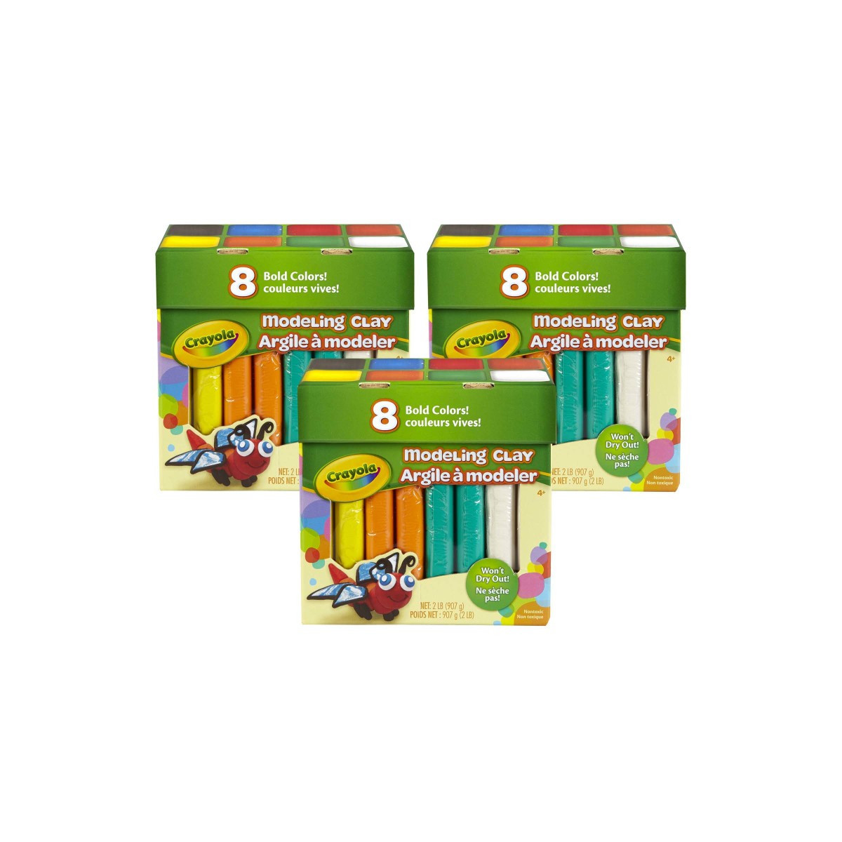 Tactile, easy to work with, and soft to the touch, Crayola Modeling Clay is designed especially for kids' hands. The clay makes an ideal first sculpting compound and can help children develop an early sense of form and finesse. These vibrant colors are great for sculpting play houses, figures, flowers, and more. Completely nontoxic, the clay is safe and suitable for young children ages 36 months and up. The clay is also designed to scrape easily off most surfaces, making cleanup a breeze. Each pack includes 2 lbs. in 8 colors. Sold as 3 packs for a total of 6 lbs. of clay.