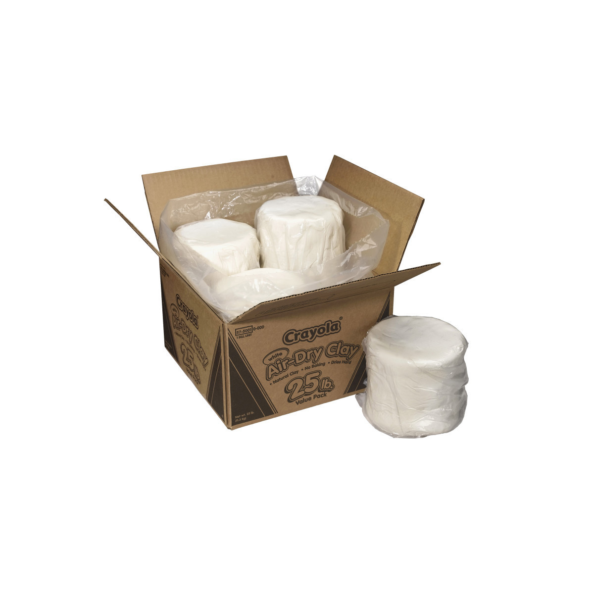 Crayola Air-Dry Clay is a fine, natural white earth clay that air dries to a hard solid. No kiln or oven necessary! Easy to use with traditional modeling techniques, it's also a snap to clean up. Air-Dry Clay is smoother, finer and less sticky than traditional clay. Dry pieces can be painted or varnished. 25 lb Value Pack.