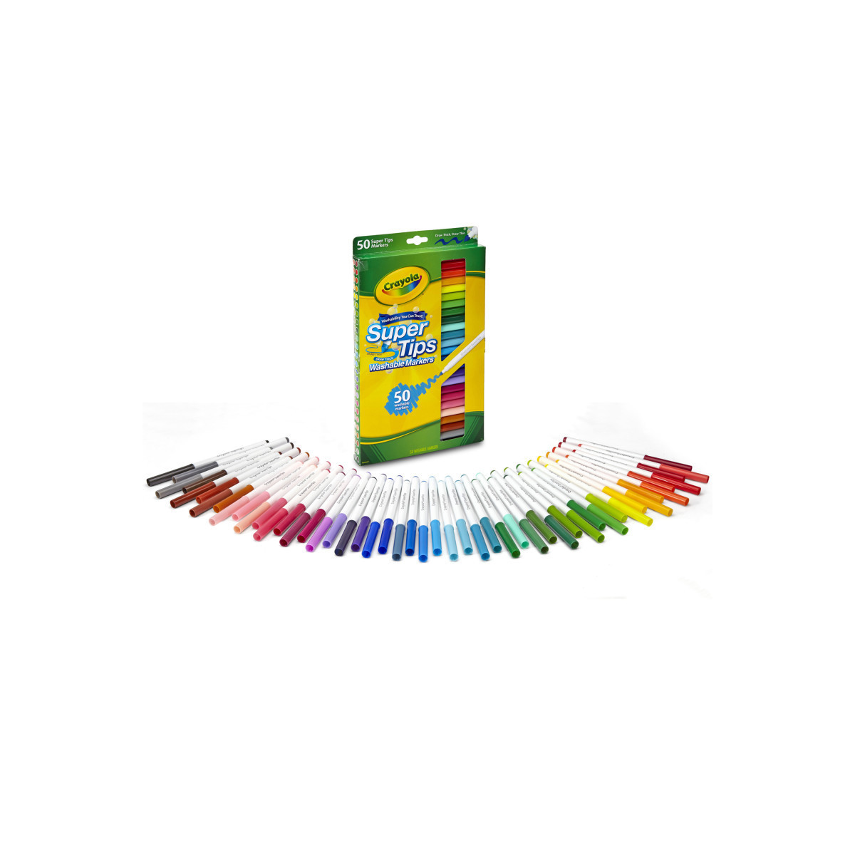 Includes 50 Crayola Super Tips Washable Markers in assorted colors