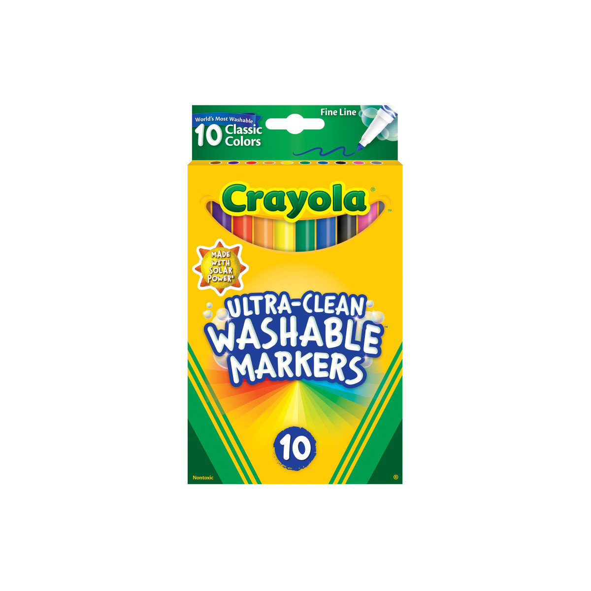 Kids love to get creative with color, but parents want to keep the color where it belongs and easily remove it where it doesn't! Crayola Ultra-Clean Fine Line Bold Markers now have an improved Ultra-Clean washable formula and come with two new bold colors. These durable fine-line markers are ideal for writing, drawing, or coloring in small areas. Fine Line Markers provide artists with 10 classic Crayola colors that feature Color Max – our brightest, truest colors yet. Amp up school projects and artistic endeavors with high-quality ink that is true to color. The variety of bright, classic colors in this pack invites imaginative expression. With its slender tip, the Fine Line Marker is a precise drawing tool. Perfect for coloring in small areas, these markers are also great for writing or drawing thin lines or dots. These markers lay down plenty of vibrant color and won't smudge or bleed through paper. The world's most washable non-toxic markers now come in an improved Ultra-Clean formula that washes easily from skin, clothing, and common household surfaces—even painted walls. Each pack includes 10 markers.