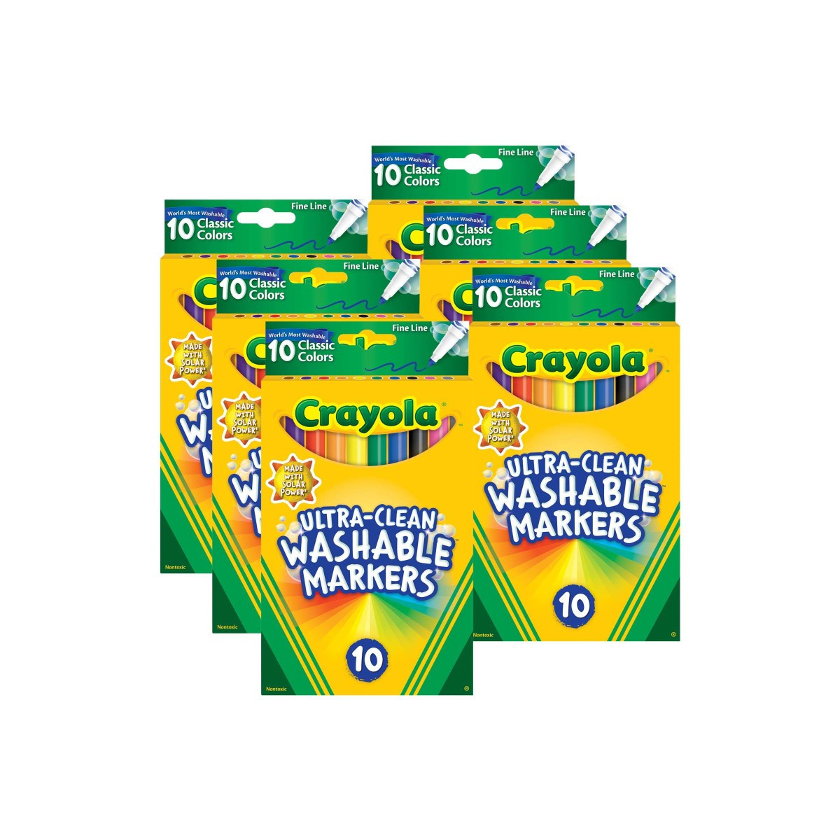 Kids love to get creative with color, but parents want to keep the color where it belongs and easily remove it where it doesn't! Crayola Ultra-Clean Fine Line Bold Markers now have an improved Ultra-Clean washable formula and come with two new bold colors. These durable fine-line markers are ideal for writing, drawing, or coloring in small areas. Fine Line Markers provide artists with classic Crayola colors that feature Color Max – our brightest, truest colors yet. Amp up school projects and artistic endeavors with high-quality ink that is true to color. The variety of bright, classic colors in this pack invites imaginative expression. With its slender tip, the Fine Line Marker is a precise drawing tool. Perfect for coloring in small areas, these markers are also great for writing or drawing thin lines or dots. These markers lay down plenty of vibrant color and won't smudge or bleed through paper. The world's most washable non-toxic markers now come in an improved Ultra-Clean formula that washes easily from skin, clothing, and common household surfaces—even painted walls. Each pack includes 10 markers. Sold as 6 packs for a total of 60 markers.
