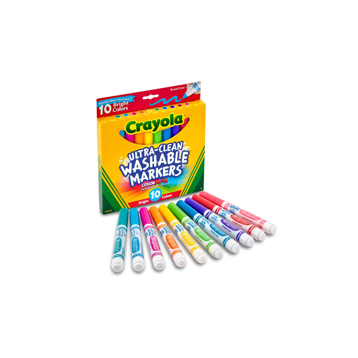 CRAYOLA ULTRA CLEAN MARKERS: Features 10 Crayola Ultra Clean Washable Markers in Bright Colors.