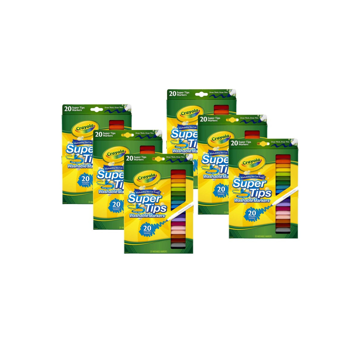 CRAYOLA MARKERS: Sold as 6 packs, each pack features 20 Crayola Super Tip Markers in washable colors.