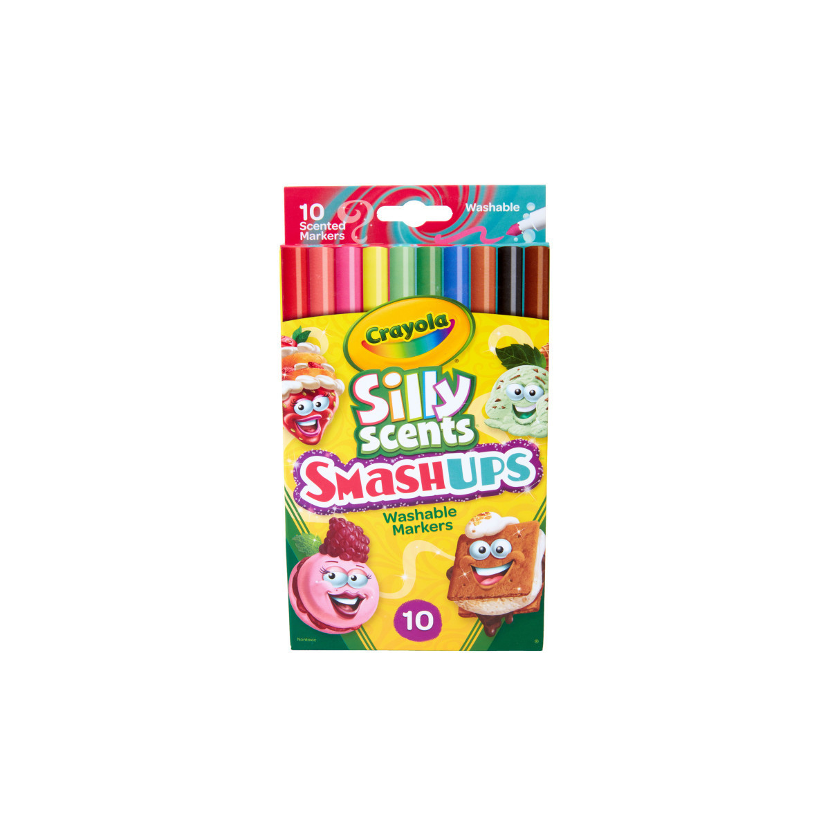 The Crayola Silly Scents Scented Washable Markers you know and love—now available in Smash Ups! This fine line marker set features sweet-smelling scents like Mint Chocolate Chip, Upside-Down Cake, Raspberry Macaron, and Red Velvet Cake. Scented school supplies are the perfect way to celebrate back to school and get your kids excited to create! Each of these Crayola scented markers is washable from skin and most washable clothing, making them great for school supplies and coloring on the go. Pair them with a Crayola coloring book for a fun bundled gift idea, and make someone's day sweeter. Additional scents and marker types sold separately.