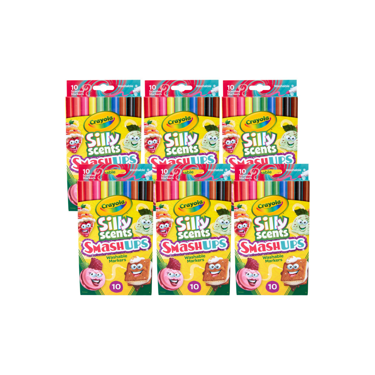 CRAYOLA SILLY SCENTS ART MARKERS: Sold as 6 packs, each pack includes 10 Fine Line Scented Markers with sweet scent Smash Ups!